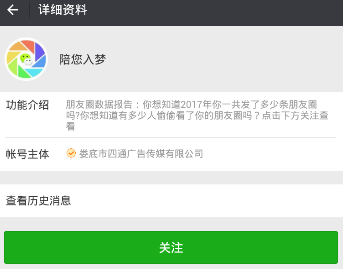 1.可以进入微信官方账号按照上述方法生成。这时候你会跳转到“如梦陪你”的微信官方账号,点击关注;
