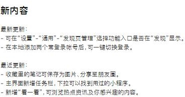 一个更新是增加了发现页面管理功能。用户可以在我的设置-常规-发现页面管理中打开或关闭发现页面的功能入口。