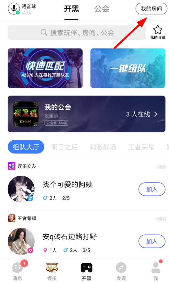 1、如果你想在玩黑的时候也玩战歌,需要点击软件页面下方的“打开黑”按钮,然后选择右上角的“我的房间”功能,创建你的房间自己的房间。到