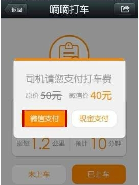 【/br/】第四步:上车到达目的地,司机在司机端输入打车费用,选择微信支付,立减10元,弹出输入确认框。