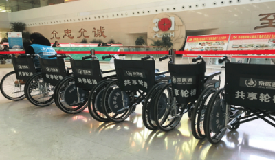 1.医院目前有两个共享轮椅落客点,分别在门诊一楼和急诊大厅,随时为患者提供服务。