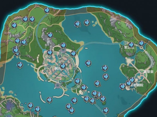 5.看上面的图点就能找到所有的水神。找到这些水神后,可以去鹿井泉祭拜,获得奖励。奖励机制可以参考须弥的梦树;