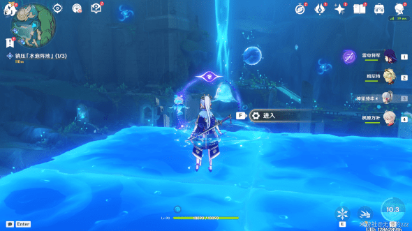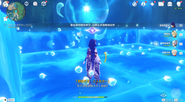 4.然后根据任务的指引,攻击前方的水晶,从而形成保护自身安全的屏障,因为被水泡打到会回到原来的位置;