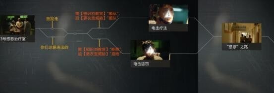 初相识刘教官拒绝或更衣室威胁拒绝=线下电击惩罚,初相识刘教官服从+更衣室威胁再次服从=线上电击治疗。