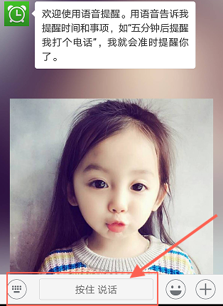 1.进入微信微信官方账号,点击语音提醒服务后,打开聊天界面,按住语音键,说出提醒,比如红包提醒;