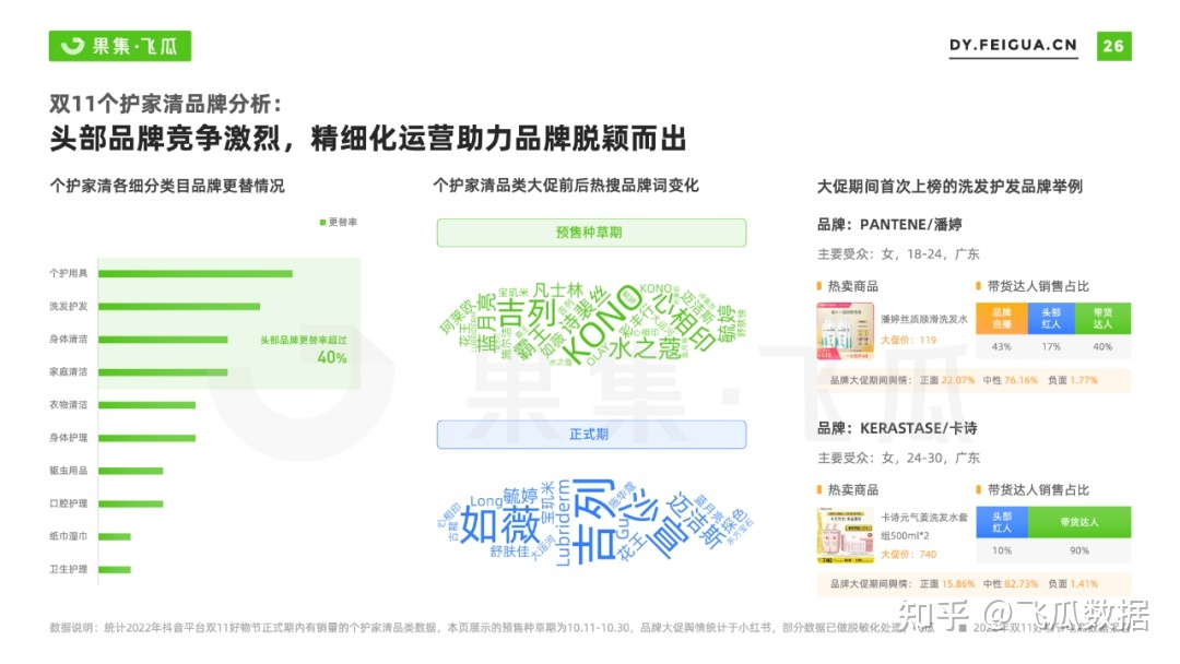 以洗发水和护发为例,该品类的总销售额在双11期间首次超越纸制品/湿巾,成功进入家庭护理的TOP1子品类。喀什、蜂花、曹操喜、潘婷等功能不同、群体定位不同的新老品牌也位列榜单前列,使得品牌结构迎来新一轮“洗牌”,这也意味着后发品牌在Tik Tok仍有弯道超车的机会。