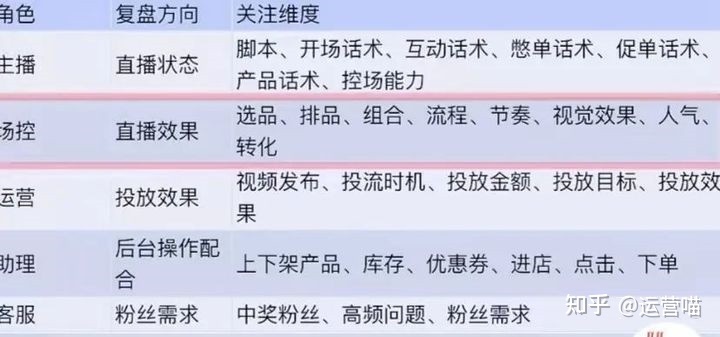 1主播复盘:你需要关注剧本和各种文字,控制场的能力和直播状态的总结。利用直播间的实时监控数据,和主播一起总结状态。