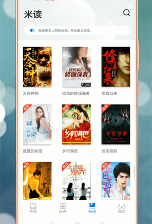在手机上打开【米读小说】,找到并点击首页进入【书架】