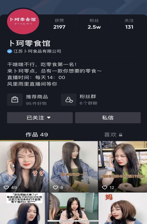3。直播班学生小刘,经营一家小吃店,直播卖各种小吃,月销量2.9W+。