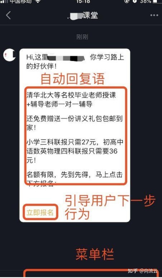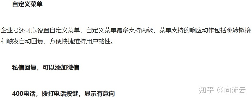 私信自动回复是用户第一次向企业号发送私信时,企业号设置自动回复的内容。设置一个吸引人的自动回复内容,给潜在用户留下深刻印象,让用户即使第一次在工作时间后也有良好的体验,甚至引导用户下一次的行走。(设置跳转链接,菜单栏)
