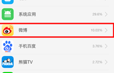 第三步:在下图界面找到您想要设置后台运行的应用程序,例如“微博”,点击进入。到