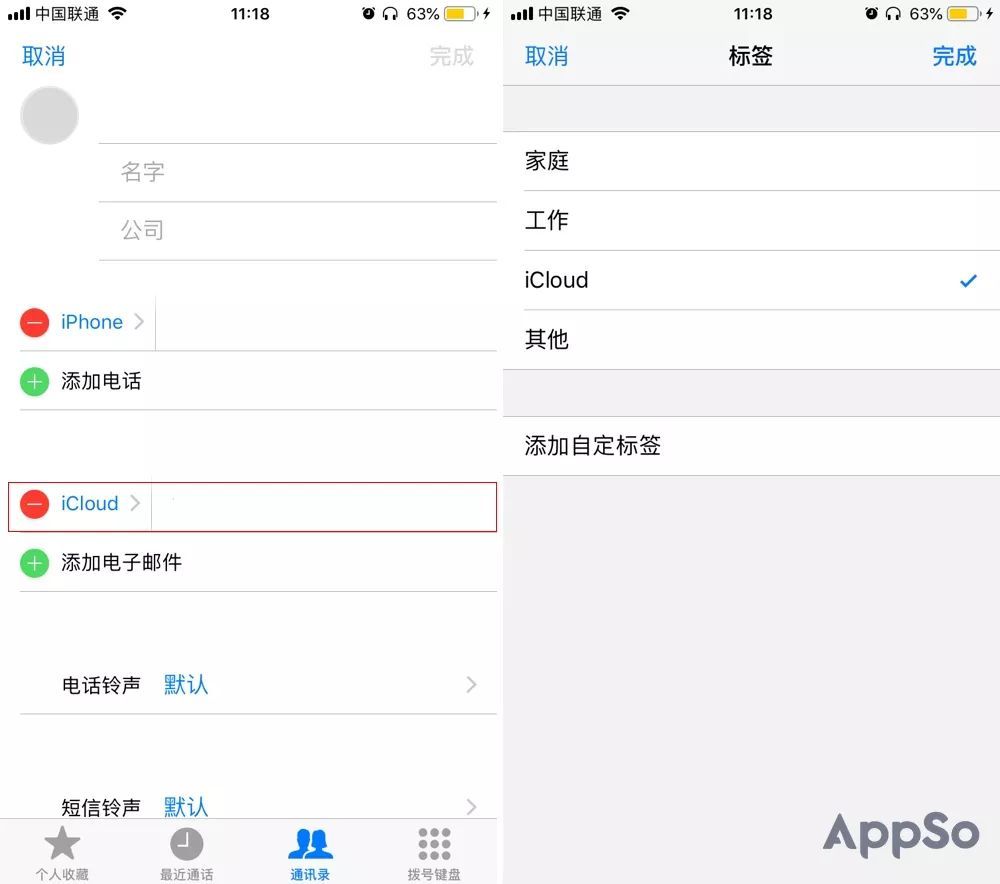 1.在通讯录中添加联系人的电子邮件帐户,选择iCloud选项,然后打开Apple帐户。
