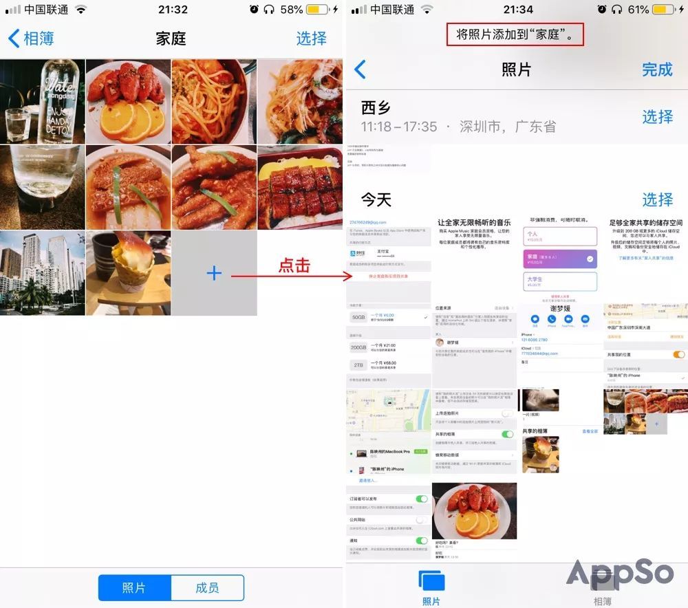 如果一家人一起旅行,每个人都用自己的手机拍照。旅行结束后,无需通过微信或AirDrop传输照片。照片可以直接添加到共享相册,家人可以随时拍摄,还可以在照片下评论、点赞。继续享受游戏的乐趣。