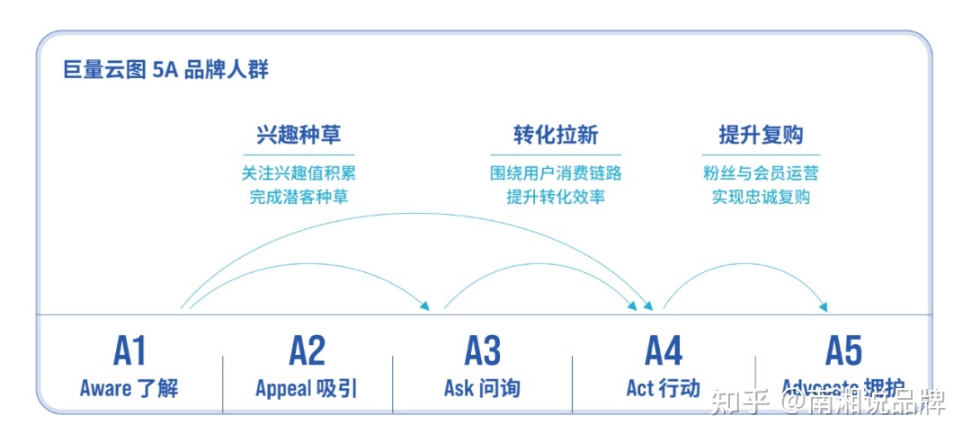 回头看看刚才5A人群的图,做一个品牌是一个长期的过程,是从A1到A5的过程。很多时候,品牌会觉得“用户难转化,用户洗不掉,是瓶颈吗?”根本原因是你的用户池不够大,也就是A1-A3的种草没有持续做下去,你就想收割A4A5。