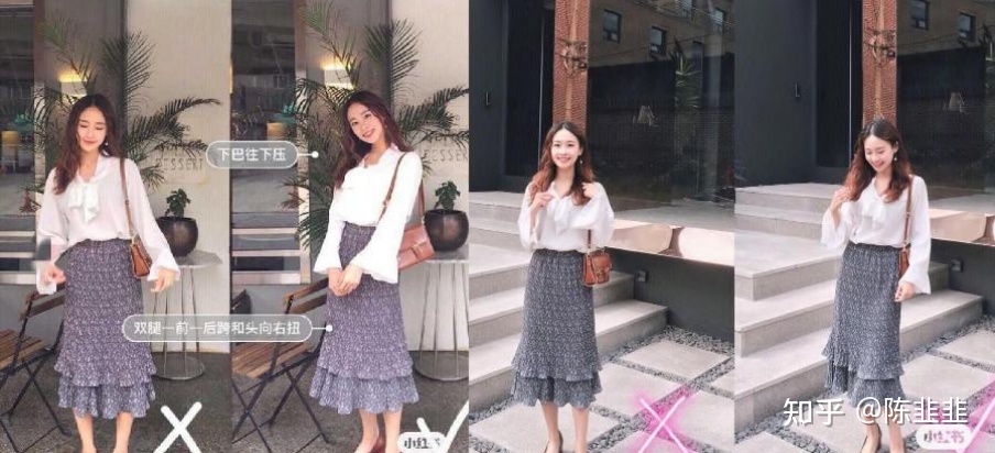 观点:侧身拍照让模特上半身更苗条。