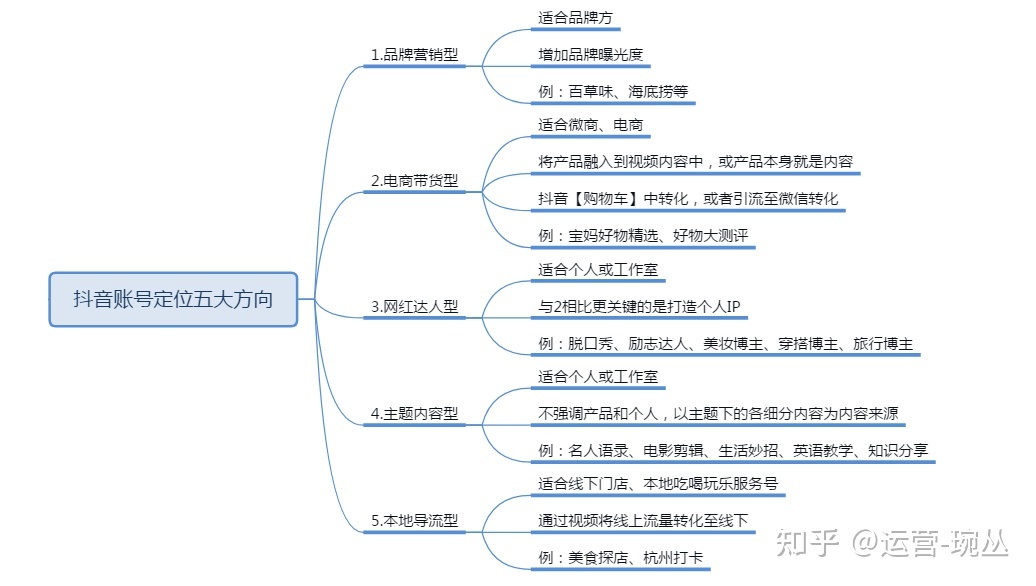 五个常见的定位方向包括品牌营销、带货电商、网络名人的才艺、主题内容、本地导流。我们结合以上三点进行分析。