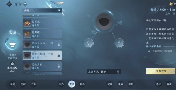 制作时,玩家只需在身份中选择烹饪,然后点击蟹黄六合汤即可烹饪。