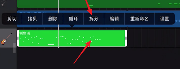 然后在需要修剪的乐曲上点击两次,然后点击【分割】;