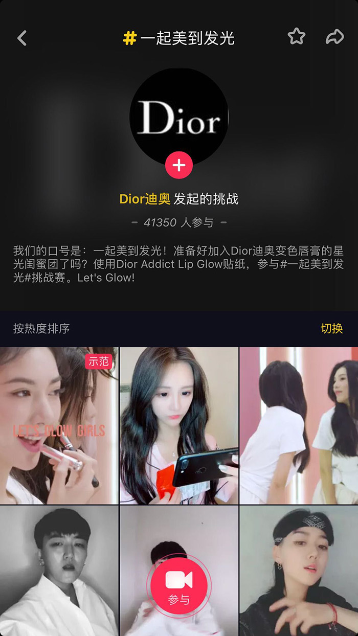 对于用户UGC来说,奢侈品是既怕又爱,怕它会损害品牌的调性,被爱的用户的参与感,更受欢迎的传播。对于奢侈品牌来说,需要找到一种合适的方式在Tik Tok上进行UGC内容。比如迪奥口红挑战赛#很好看,迪奥和Tik Tok定制了迪奥Addict唇彩贴,既激起了参与度又不失独特风格。