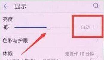 第三步:在显示菜单下,点击【自动调节】并取消勾选即可关闭自动调节,左右滑动亮度栏上的滑块即可自行调节亮度。到