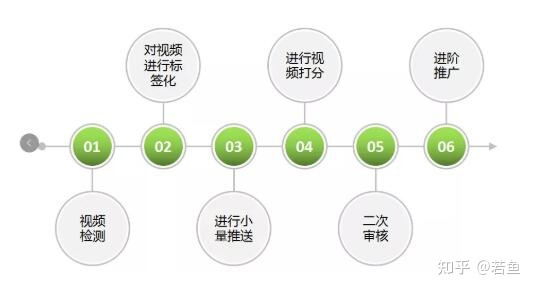平台会给账号一个等级,根据不同的等级设置不同的策略。基本策略是:视频检测→视频标注→少量推送→视频打分→二次审核(分数不够就不推送,分数够了下一轮推送)→高级推广。