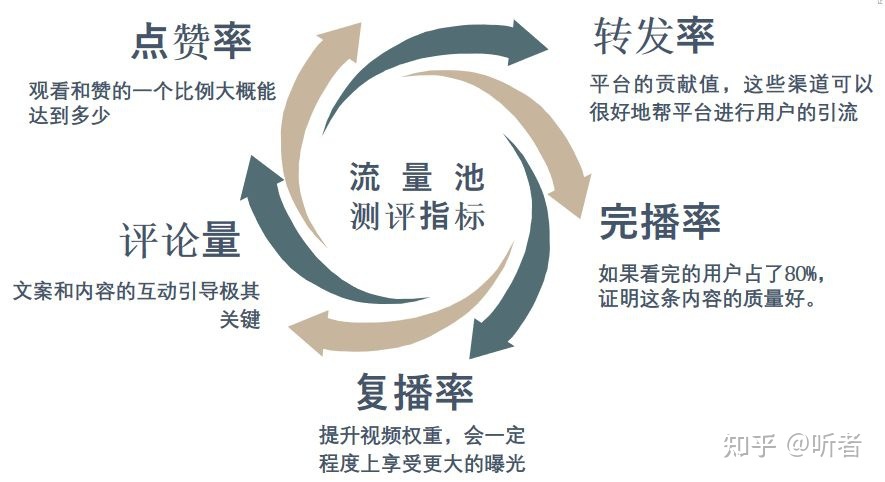 我们在发布一部新作的时候,作为运营方,要关注五个指标:播出完成率、好评率、转发率、评论率、重播率。平台会根据初期流量的反馈来判断我们的内容是否受欢迎。如果是,平台会把我们的工作分配给更多的流量,否则不会给我们分配流量。