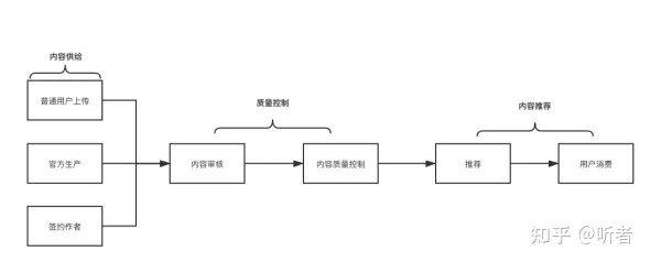 从图中我们可以看到,内容流主要分为三个阶段,即内容供给、质量控制和内容推荐。在不同的产品阶段,强调的阶段也不同。
