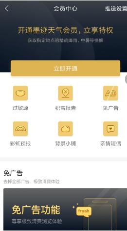 2、目前只有开通“墨迹天气”的会员才能成功激活“无广告”服务,让软件更加清爽。