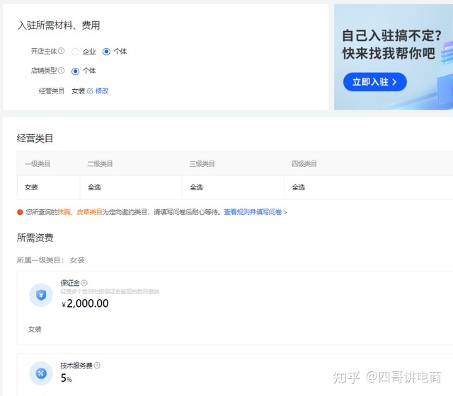 注意:不能办理个人身份证入住店铺。你必须有营业执照。
