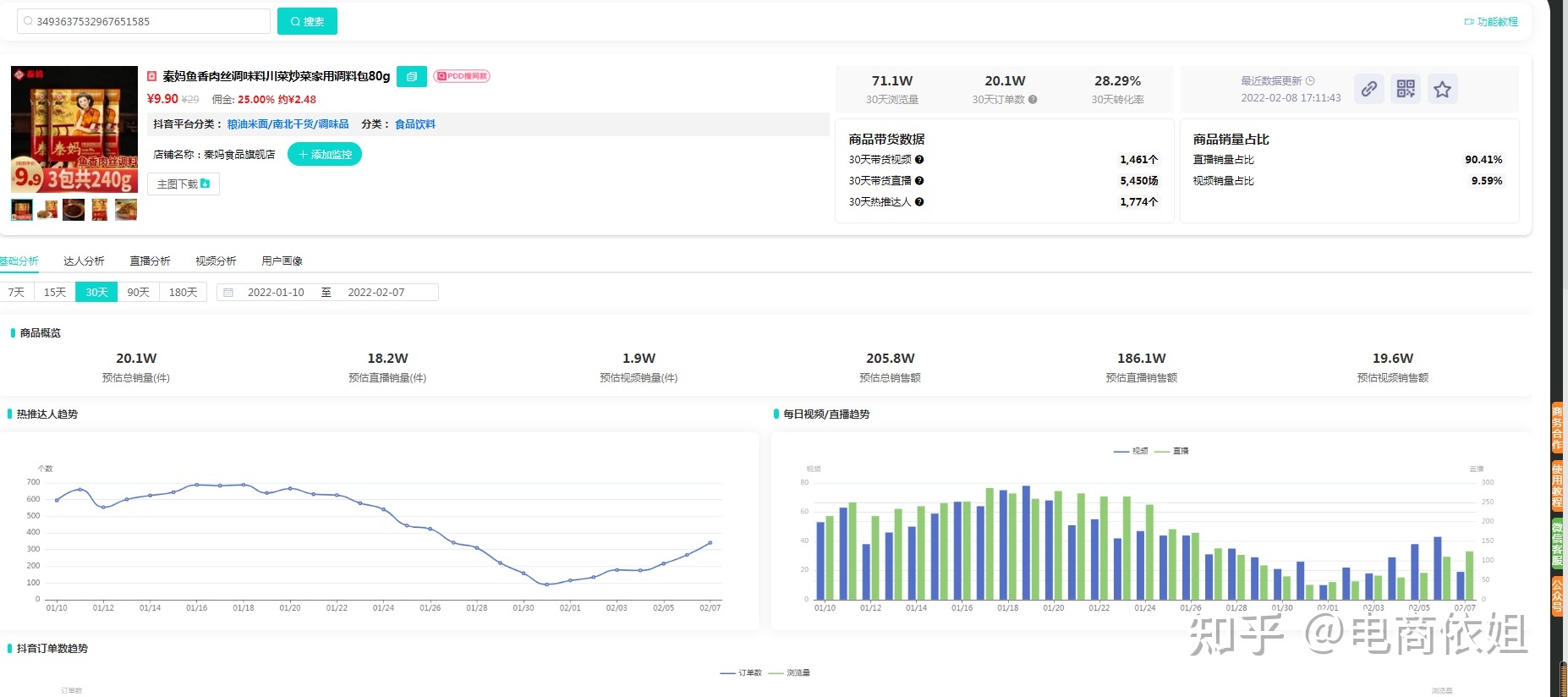 - 4.看对手成交,找一个抖音上正在带这个产品的达人进行对手的数据分析,重点看他什么时候开始带的,以及他卖了多少单,成交额是多少,从而预估对手的大致盈利金额。