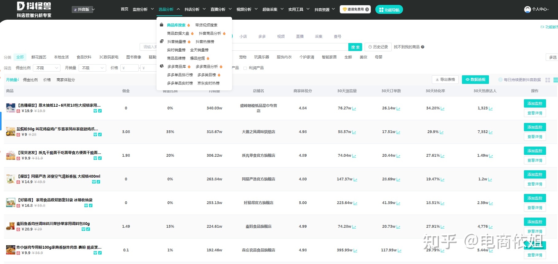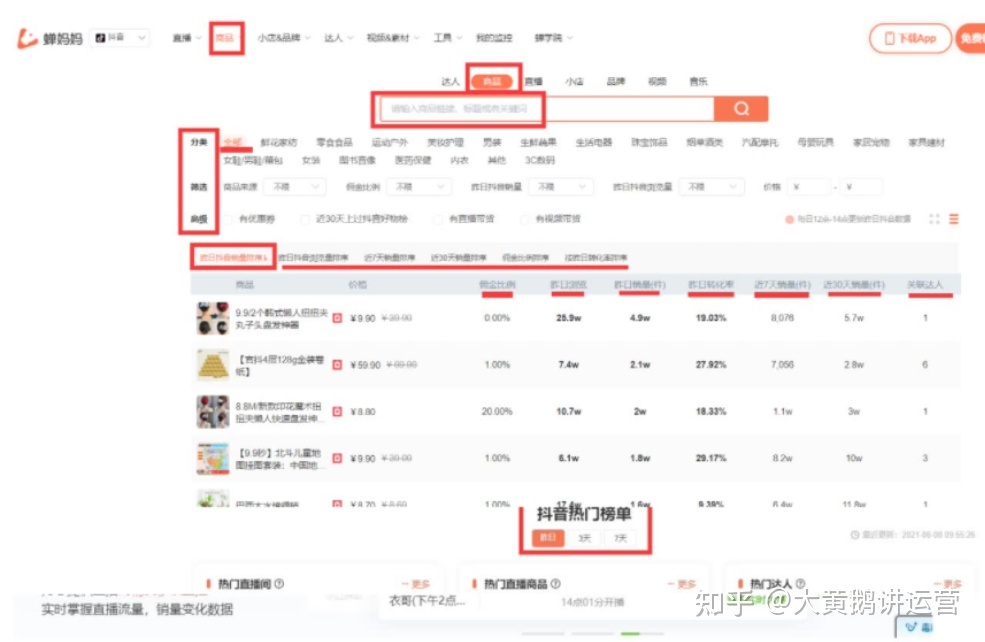 我一般会在蝉妈妈、飞瓜这类综合数据工具中寻找自己的产品。下面是一些简单的方法。