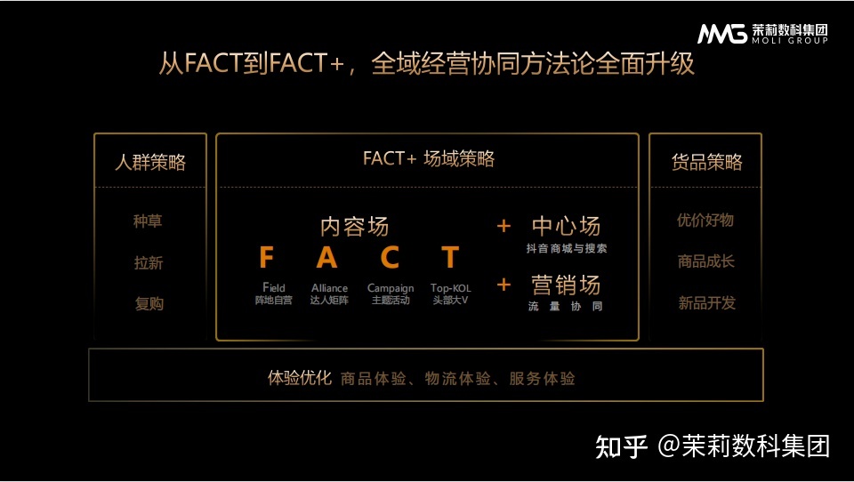 此前,平台提出了FACT+全球管理协同方法论,由Tik Tok的FACT方法论演化而来。品牌商家除了四大内容场,即场(自营)、联盟(人才矩阵)、战役(主题活动)、Top-KOL(头部大V)之外,还需要关注Tik Tok商城及其搜索功能构成的中心场,以及流量协同效应下的营销场。透彻理解这些关键因素,可以帮助品牌商家更好地制定人群策略(种草、拉新品、回购)和产品策略(开发新产品、增长商品、提供好价格好商品)。