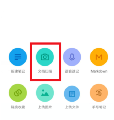 2. 在出现的两排按钮中,点击“文档扫描”图标打开该条目。到