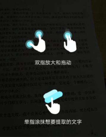 5、我们在提的时候,先用手指拖动整个页面,让字和指腹大小一致,然后通过涂抹的方式来提起来。到