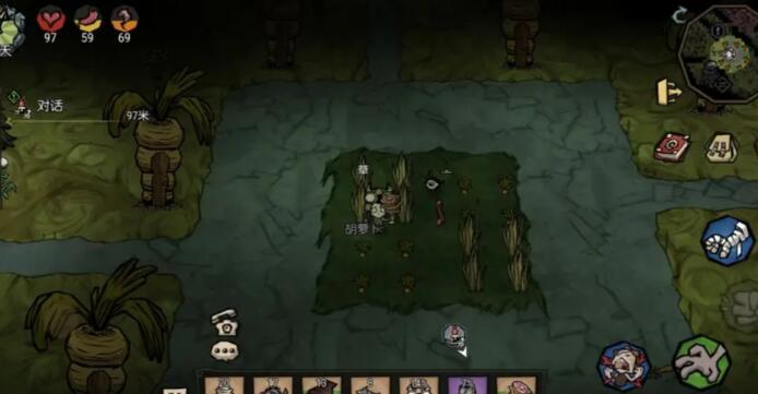 13.玩家在猪王村下有地方种植金字塔形的草和浆果丛,在浆果丛金字塔的右下方补种三叶浆果丛。