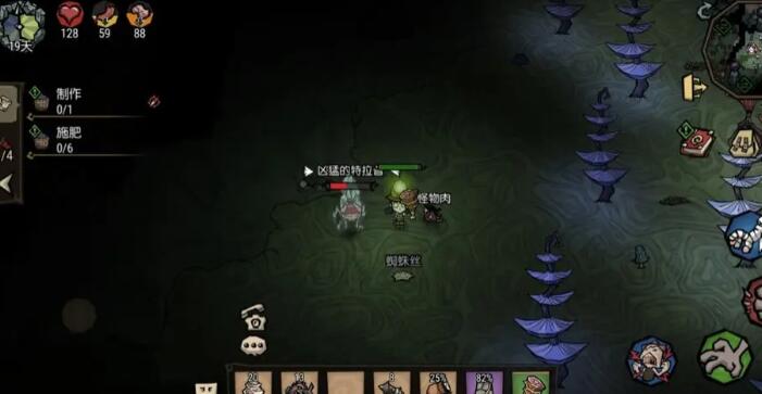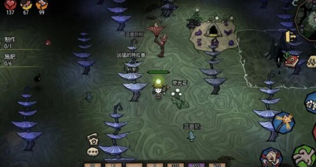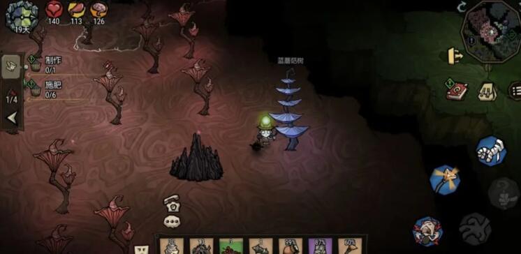 9、玩家在地下洞穴红菇林,连根拔起蓝菇树。