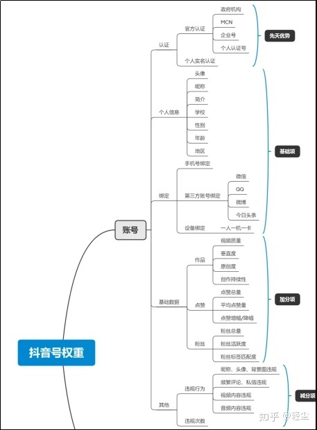 Tik Tok账号权重一般包括以下几个部分:个人信息、身份认证、其他平台绑定、基础数据等材料。帐户权重越高,搜索排名越高。下图生动地说明了如何计算Tik Tok账户的权重: