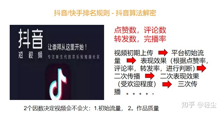 原创度、播放完成率、点赞率、转发率、评论率、关注度决定了抖音视频的质量。