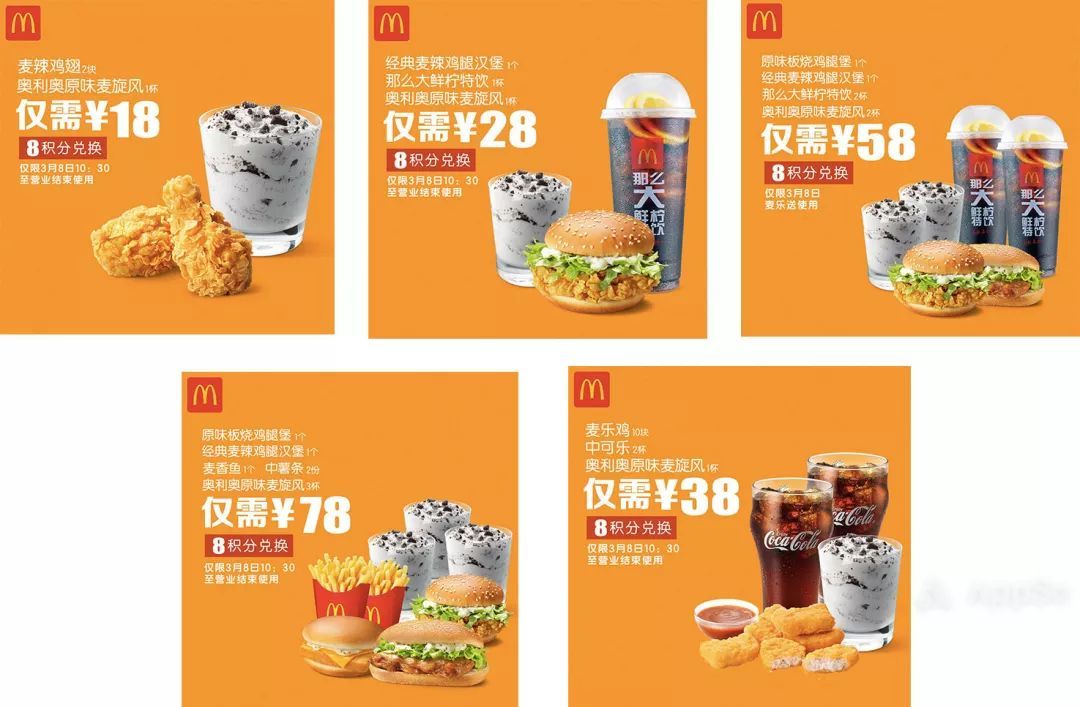 除了免费的辣鸡汉堡外,还可以用8积分兑换一些套餐的优惠券。当然,性价比没有免费那么高。