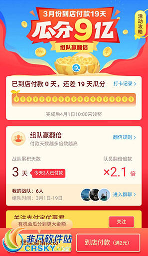 支付宝可以说是福利最多的第三方支付平台之一。每年都有很多活动等着我们去参加。 2019年3月即将到来,支付宝推出了到店支付瓜分9亿红包的活动。这次,与之前的分红包活动不同的是,你可以和朋友组队,组队的朋友支付更多天数还可以增加分享红包的倍数!这听起来更令人兴奋!不过很多朋友还是不知道如何组队?下面就和小凡一起来了解一下吧!