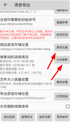 4、此外,通过选择页面底部的“设置”选项,您还可以调出相关页面查看“微信语音存储位置”并刷新软件搜索到的语音消息。