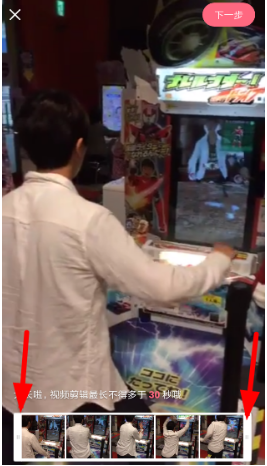 3.编辑视频的方法非常简单。您只需滑动底部两侧的进度条,保留部分想要上传的视频内容,然后点击右上角的按钮即可发布!