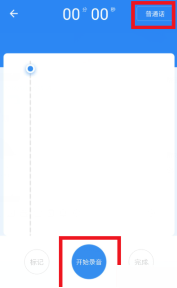 3. 单击底部的蓝色圆圈进行录制。右上方的框中有不同的单词可供选择,然后点击开始录制。