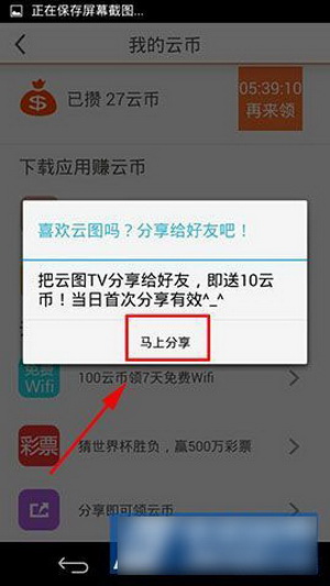 2)在“我的云币”中我们可以看到“分享获取云币”,点击它,然后点击“立即分享”。 (如下所示)