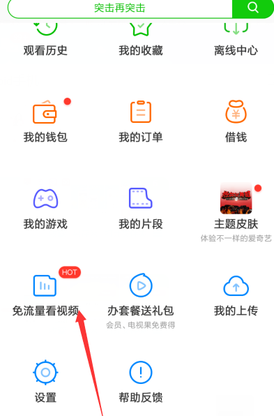 3.点击个人中心下无流量观看视频菜单按钮
