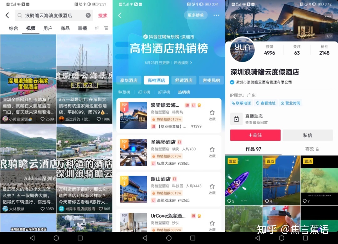 2、自然线下转化:即刷到抖音影音、私信官方号预约,或来酒店入住,或去其他平台下单。