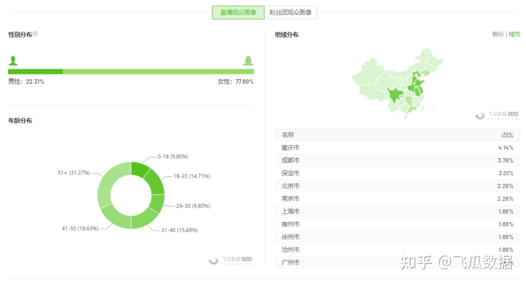 结合直播观众画像,目前这款产品主要吸引苏北地区的观众,51岁以上用户占比很大。