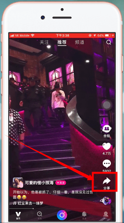 找到你喜欢的微视视频,然后点击右下角的【分享】,