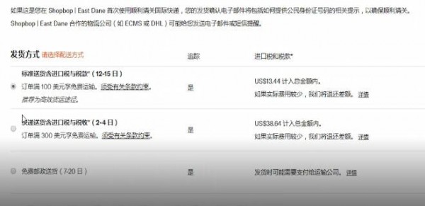 填写地址后,选择运送方式。 SHOPBOP现提供3种运输方式,您可以根据您个人到货时间需求选择合适的运输方式。到