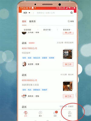 打开手机上的【店长直聘】APP,找到并点击屏幕下方的【我的】